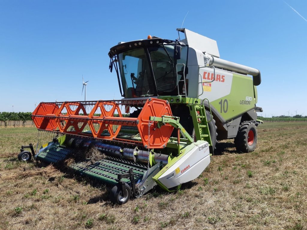 Weizenernte in Aktion mit unserem Claas Lexion 530 und einem Geringhoff Klappschneidwerk.